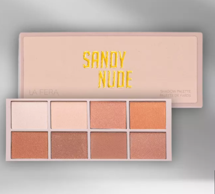 - La palette Sandy Nude de LA FERA réunit des teintes neutres et chaudes idéales pour un maquillage naturel et élégant. Ses fards mats et irisés se combinent parfaitement pour créer des looks subtils de jour ou des smoky eyes raffinés en soirée. Sa texture douce et pigmentée permet une application facile et un estompage homogène.